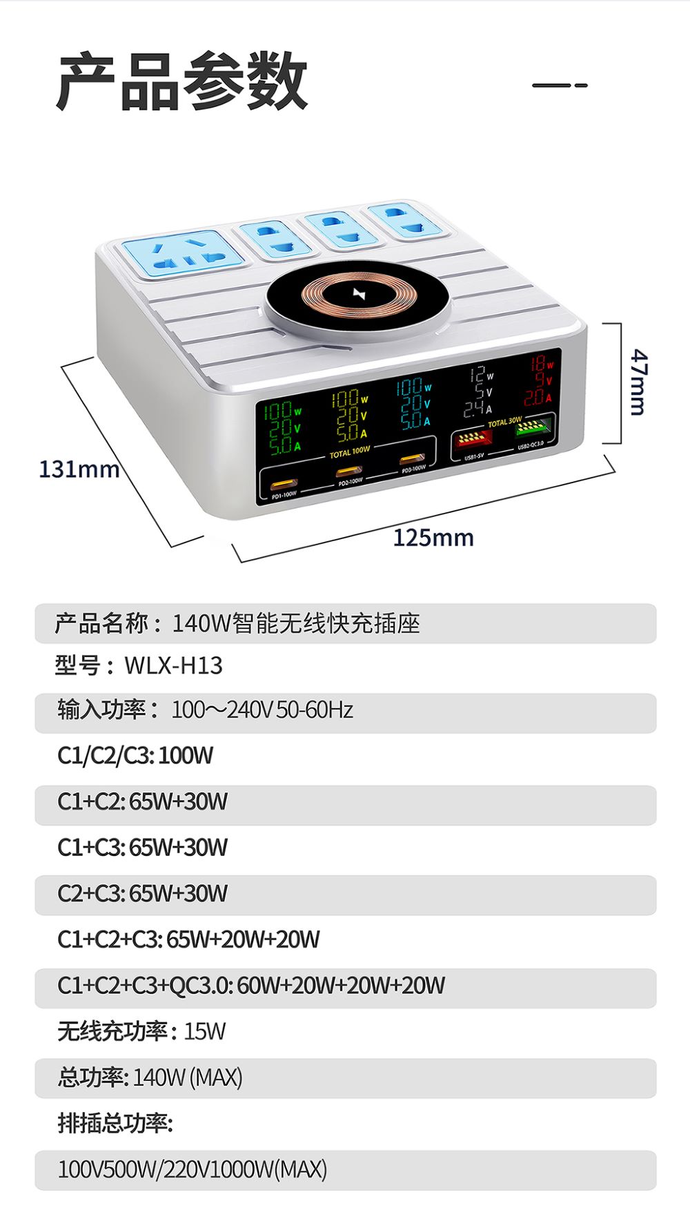 When using one mouthC1/C2/C3 : 5V3A/9V3A/12V3A/15V3A/20V5A(100W)